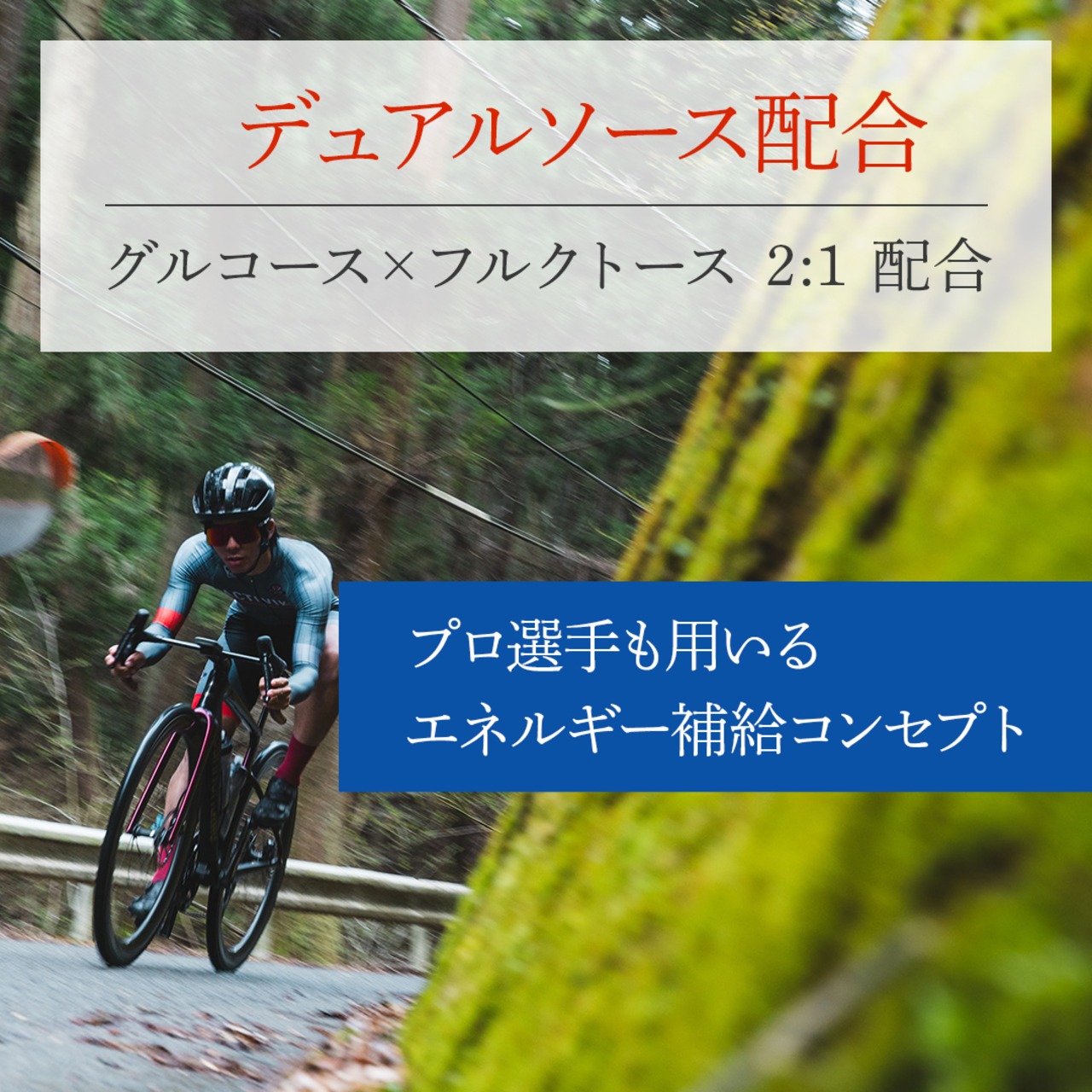 グルコースとフルクトースを2対1の比率で配合。素早く効率的な糖質補給を行うことができる。