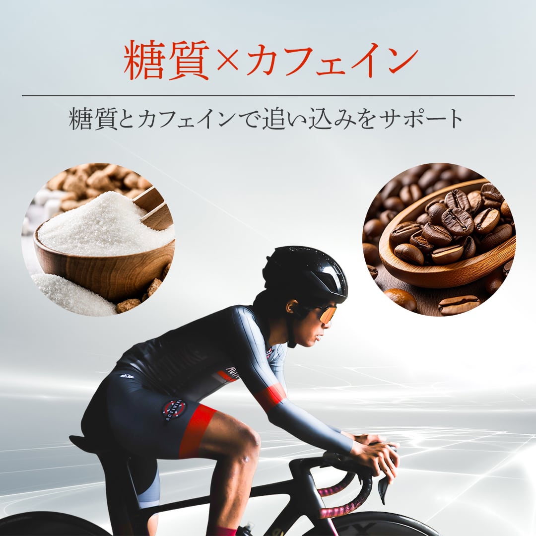 レース後半の集中力アップ&糖質の吸収量の効率化を図ります。