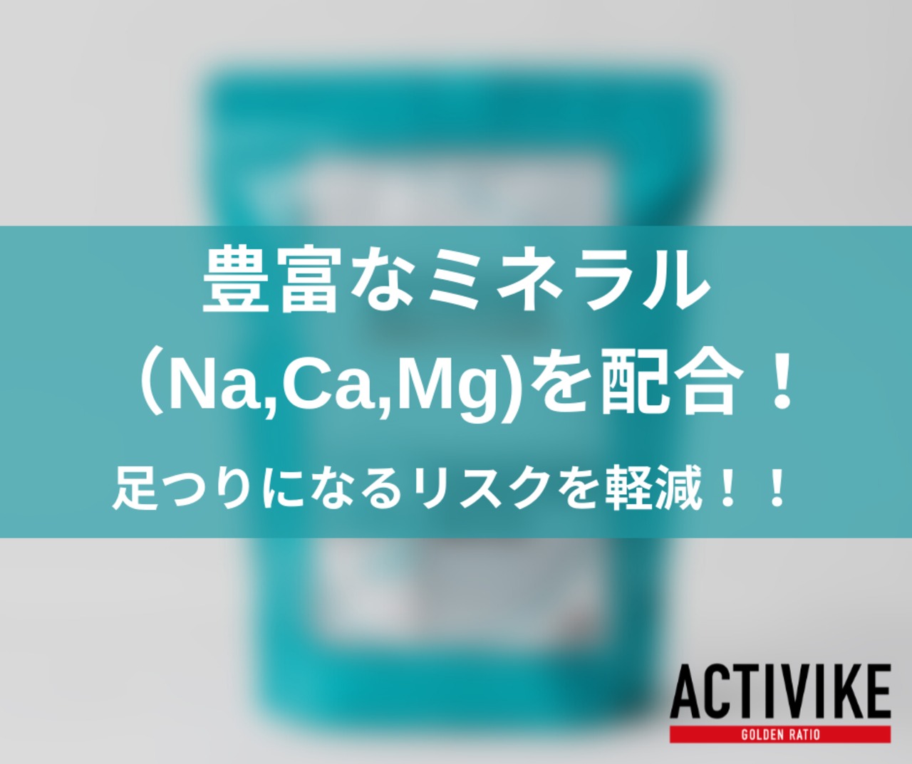 ナトリウム、マグネシウム、カルシウ厶を十分量配合していルため足つりのリスクを軽減します。
